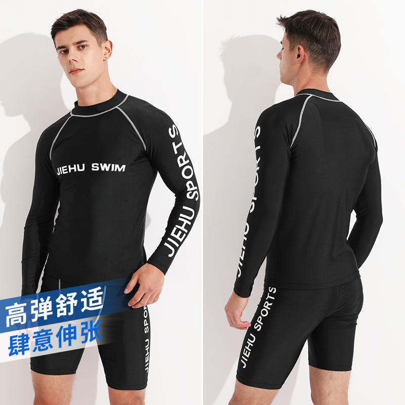 ชุดว่ายน้ำผู้ชายเจียหู แขนยาว UPF50+ แห้งเร็ว คอกลม สองชิ้น สำหรับว่ายน้ำและกีฬาทางน้ำ