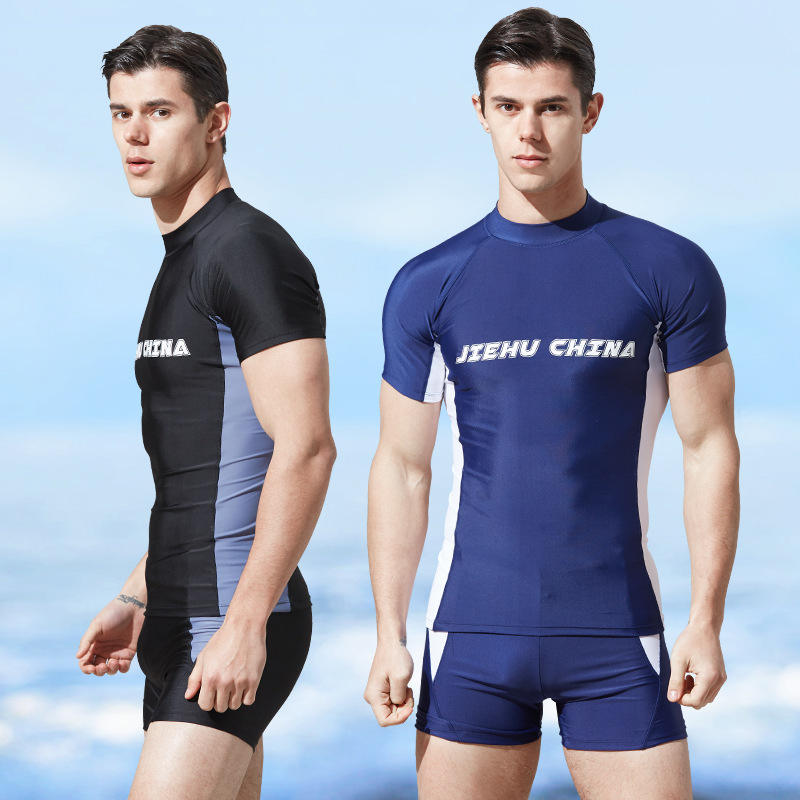 ชุดว่ายน้ำผู้ชาย Jiehu แบบแห้งเร็ว สองชิ้น คอทรงกลม ผลิตจากโพลีเอสเตอร์ สำหรับผู้ใหญ่ ผลิตที่ซานตง