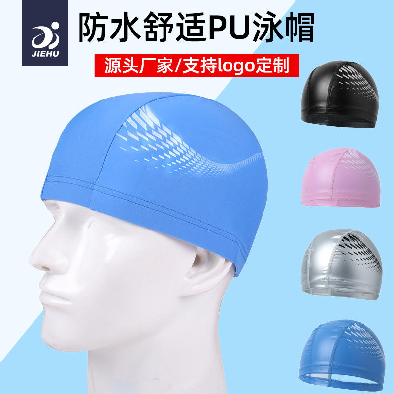 หมวกว่ายน้ำเคลือบ PU ยี่ห้อเจียหู สำหรับผู้ใหญ่ ไซส์ใหญ่ กันน้ำ สีพื้น สำหรับผู้ชายและผู้หญิง