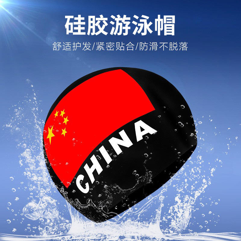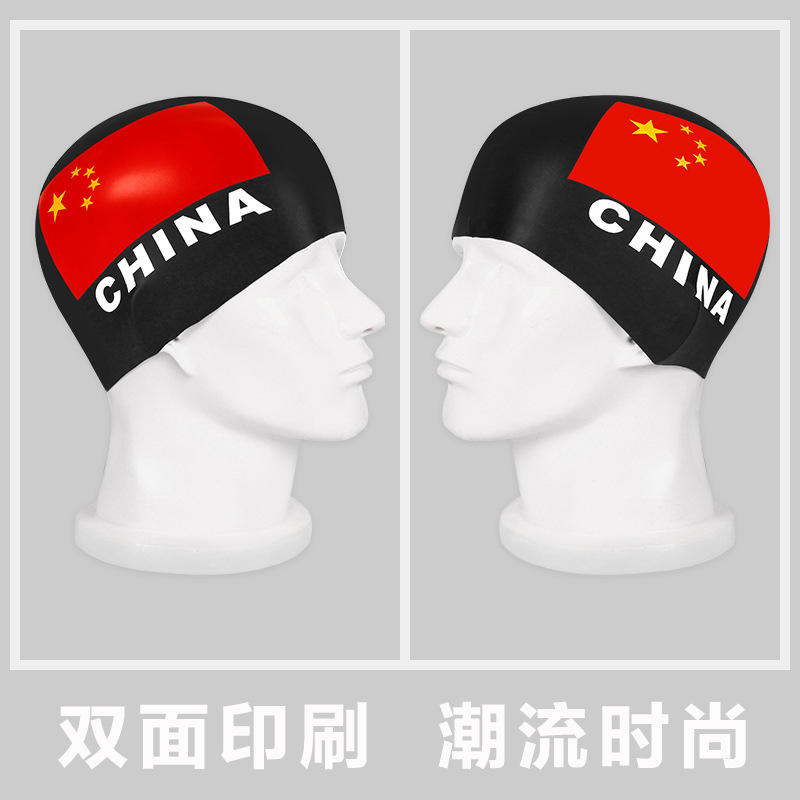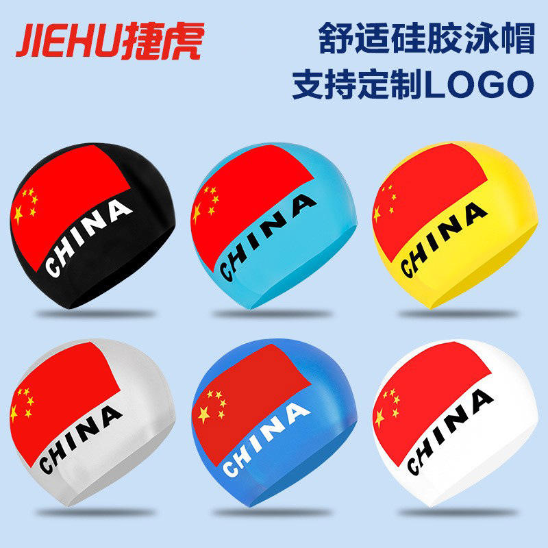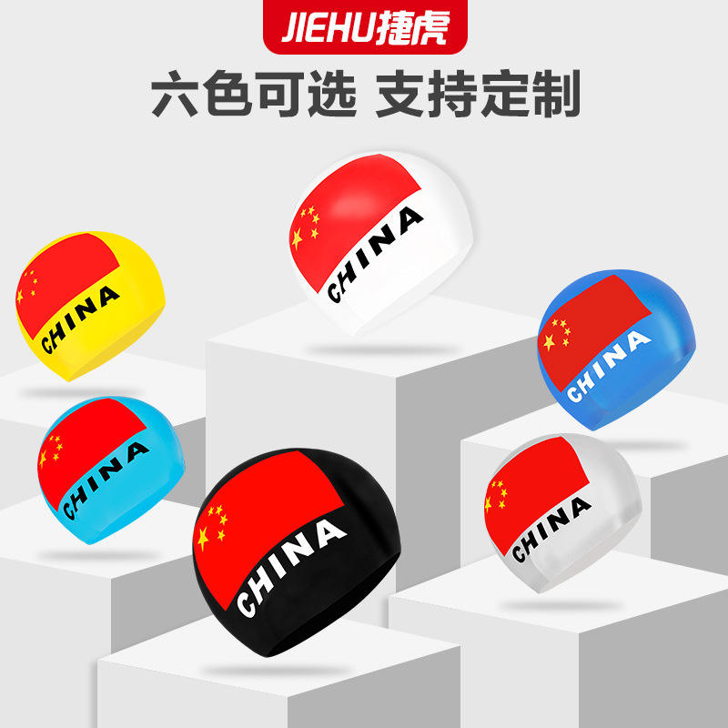 หมวกว่ายน้ำซิลิโคน Jiehu ลายธงชาติจีน กันน้ำ สวมใส่สบาย นุ่ม สำหรับผู้ใหญ่ หลายสี ระดับมืออาชีพ