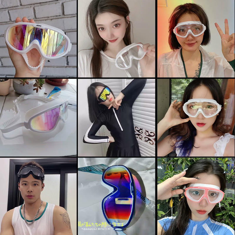 แว่นตาว่ายน้ำ Jiehu ป้องกันฝ้า กันน้ำ เลนส์ PC สำหรับผู้ใหญ่ ใช้ได้ทั้งชายและหญิง ความคมชัดสูง