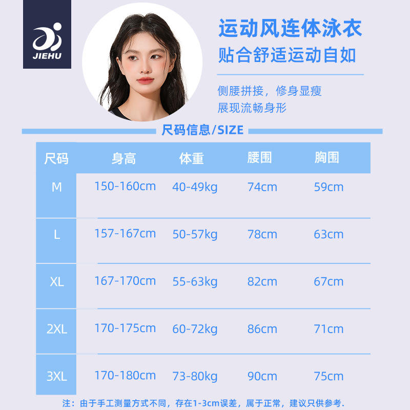ชุดว่ายน้ำวันพีซสำหรับผู้หญิง Jiehu สีดำขาวลายทาง คอกลม ซิปด้านหน้า ชุดว่ายน้ำสำหรับกีฬาทางน้ำ ขนาดผู้ใหญ่