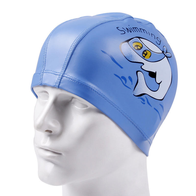 หมวกว่ายน้ำเด็กเจียเจีย J2670 วัสดุ PU อุปกรณ์ว่ายน้ำป้องกันหมอกสำหรับเด็ก ดีไซน์ปลาวาฬสีน้ำเงิน