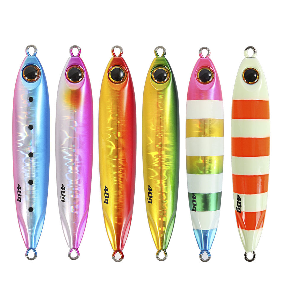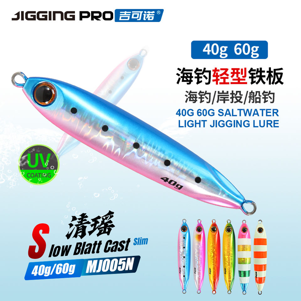 เหยื่อจิ๊กกิ้งโปร สำหรับตีชายฝั่ง แบบสโลว์ แบลต แคสติ้ง รูปทรงเพรียวบาง เหยื่อเรืองแสง น้ำหนัก 40 กรัม 60 กรัม ทำจากตะกั่ว สำหรับตกปลาทะเล เหยื่อโลหะ สำหรับตกปลาแอมเบอร์แจ็ค