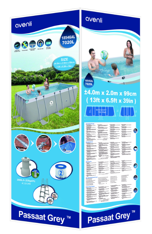 Jilong Avenli 17726 Passaat Grey Rectangular Steel Frame Pool Portable Plastic Pool 400cm X 200cm X 99cm