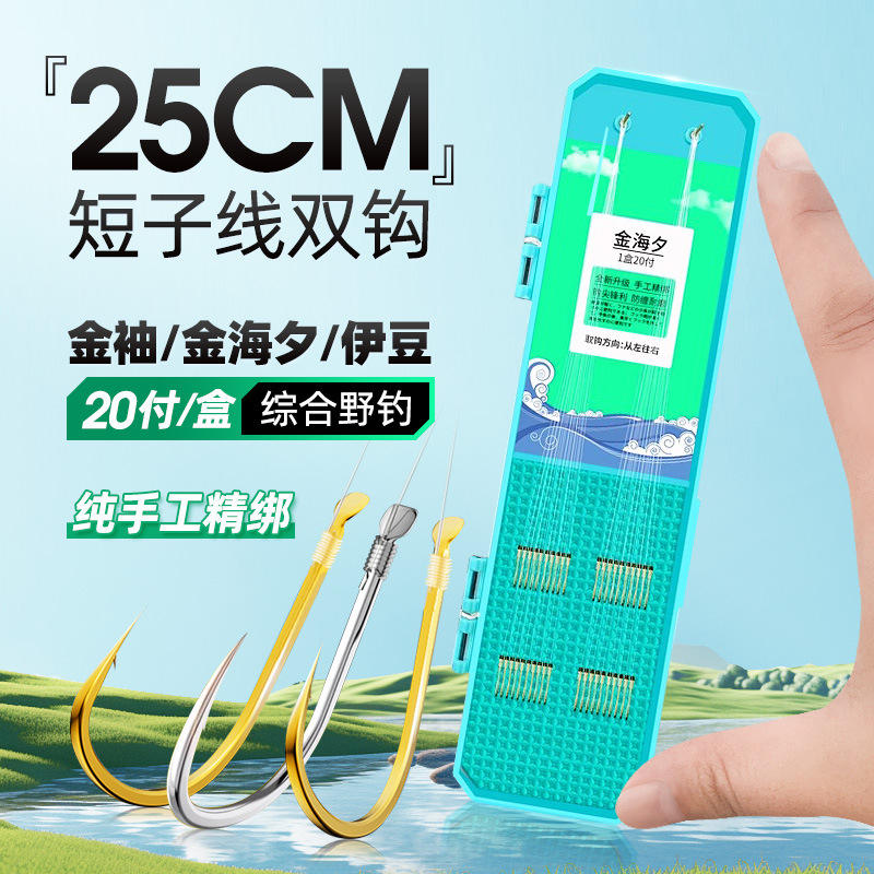 เบ็ดตกปลา Jin Haixi แบบสั้น 25 ซม. แบบสองทาง พร้อมเงี่ยง สำหรับตกปลาคาร์พน้ำจืด 20 ตัว/กล่อง