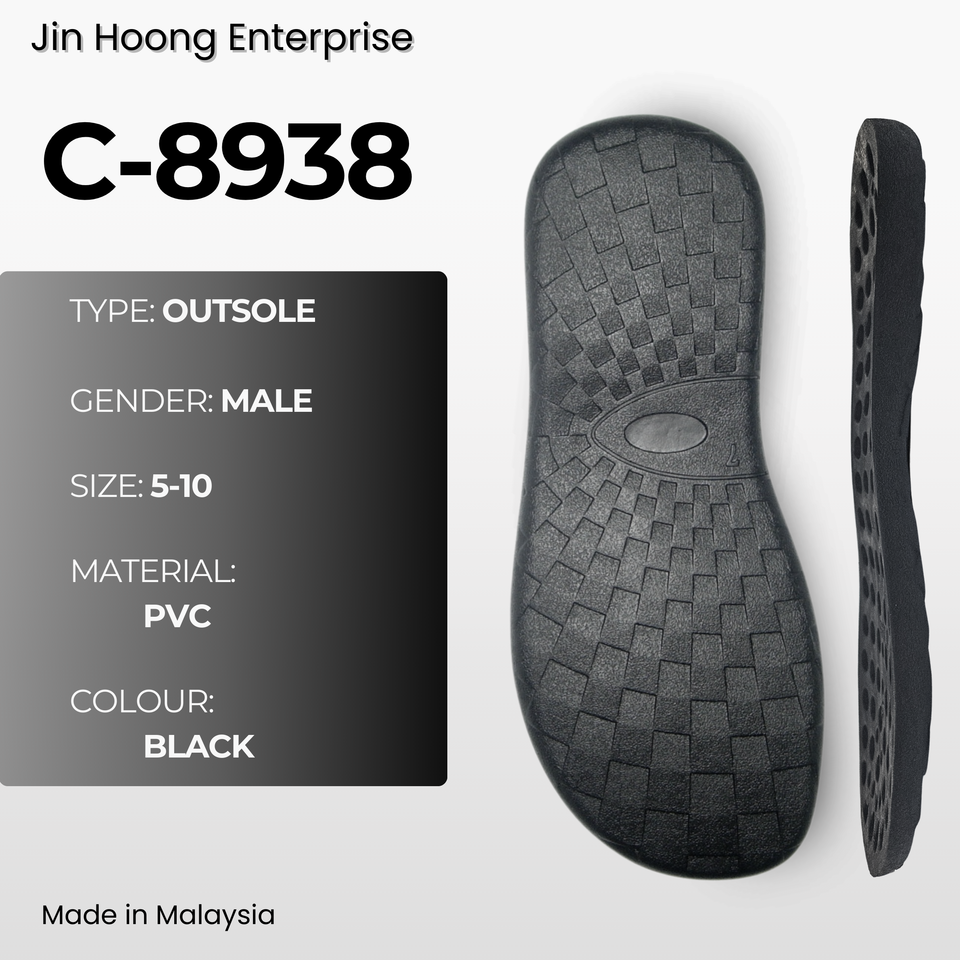 รองเท้า/รองเท้าแตะ จินฮองเมน รุ่น C-8938 สีดำ ผลิตจากพีวีซี กันน้ำ กันลื่น ทนทาน หนา 20 มม. ผลิตในประเทศมาเลเซีย