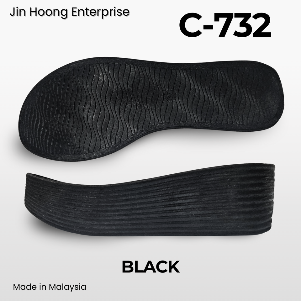 รองเท้าส้นเตารีดผู้หญิง ยี่ห้อ Jin Hoong รุ่น C-732 สีดำ ทำจาก PVC หนา 60 มม. พื้นรองเท้ากันลื่น ทนทาน กันน้ำ