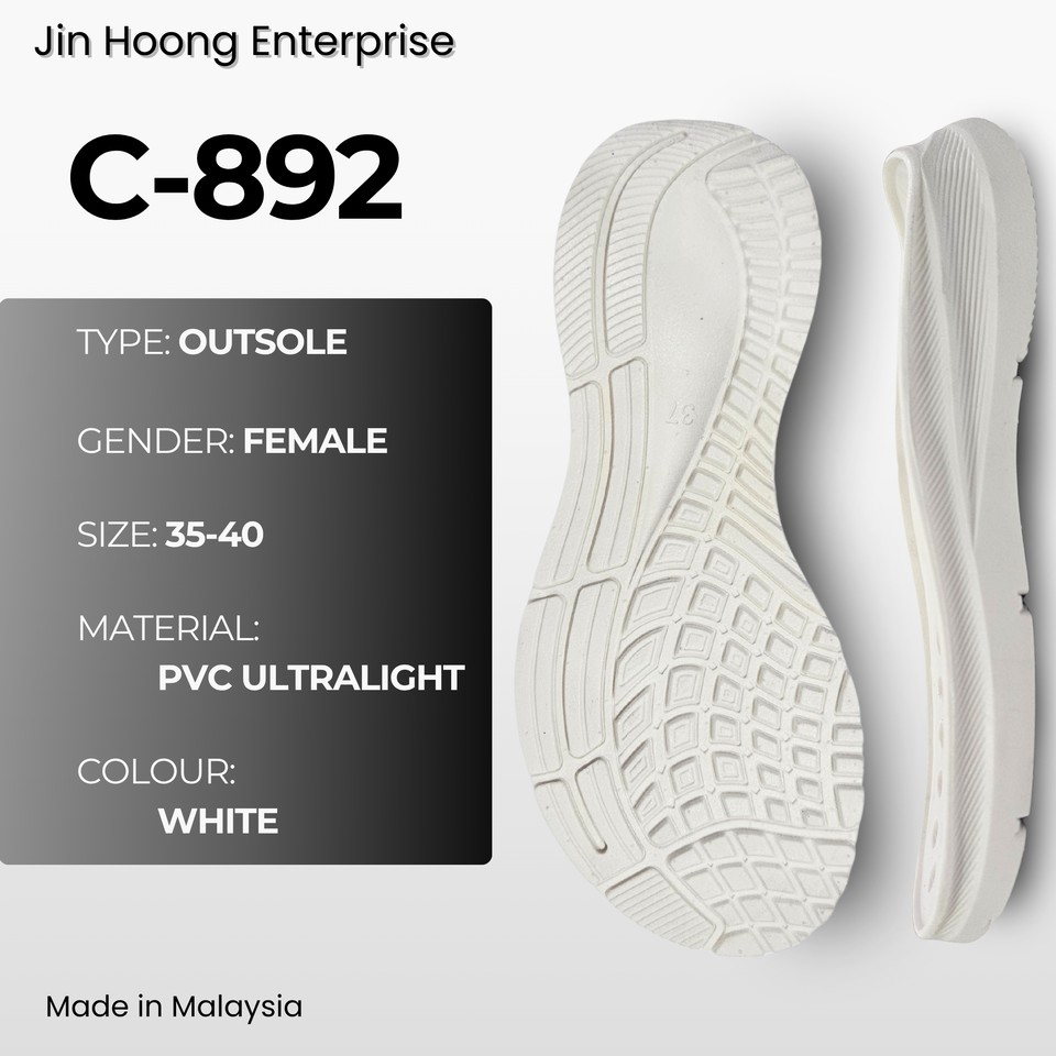 รองเท้าแตะผู้หญิง Jin Hoong รุ่น C-892 พื้นรองเท้า PVC สีขาว น้ำหนักเบา สวมใส่สบาย ยืดหยุ่นสูง ทนทาน กันน้ำ กันลื่น