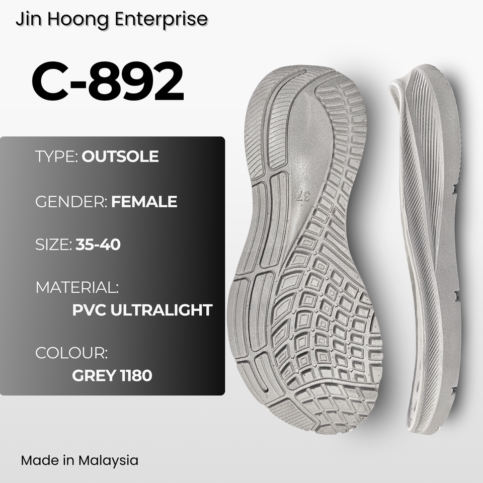 รองเท้าลำลองผู้หญิง Jin Hoong รุ่น C-892 สีเทาอ่อน พื้นรองเท้า PVC น้ำหนักเบา ทนทาน กันลื่น กันน้ำ สวมใส่สบาย ระดับสูง