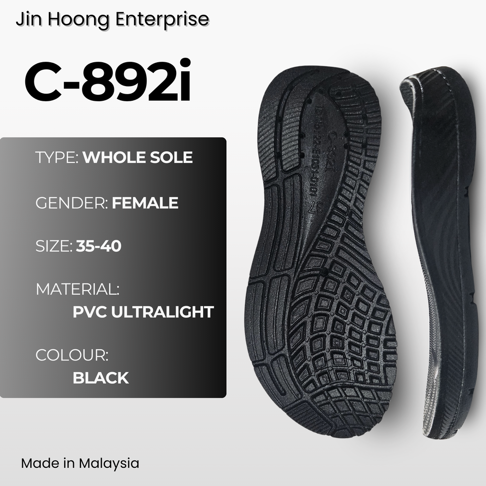 รองเท้าผู้หญิง Jin Hoong รุ่น C-892i พื้นรองเท้า PVC สีดำ ทนทาน สวมใส่สบาย น้ำหนักเบา พื้นรองเท้าแบบอินทิเกรต/แผ่นรองฝ่าเท้า ป้องกันการลื่น ดีไซน์น้ำหนักเบา