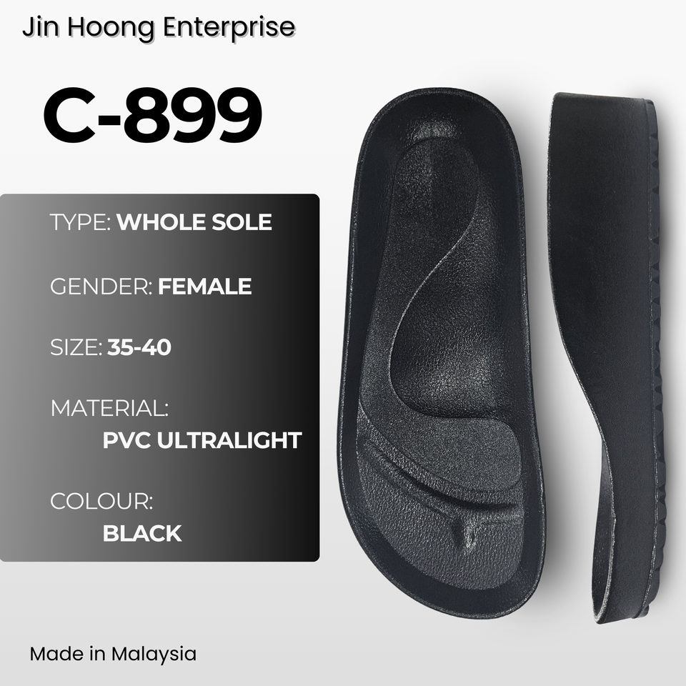 รองเท้าแตะผู้หญิง Jin Hoong รุ่น C-899 พื้นรองเท้า PVC สีดำ ทนทาน น้ำหนักเบา กันน้ำ พื้นรองเท้าแบบอินทิเกรต/แผ่นรองฝ่าเท้า กันลื่น