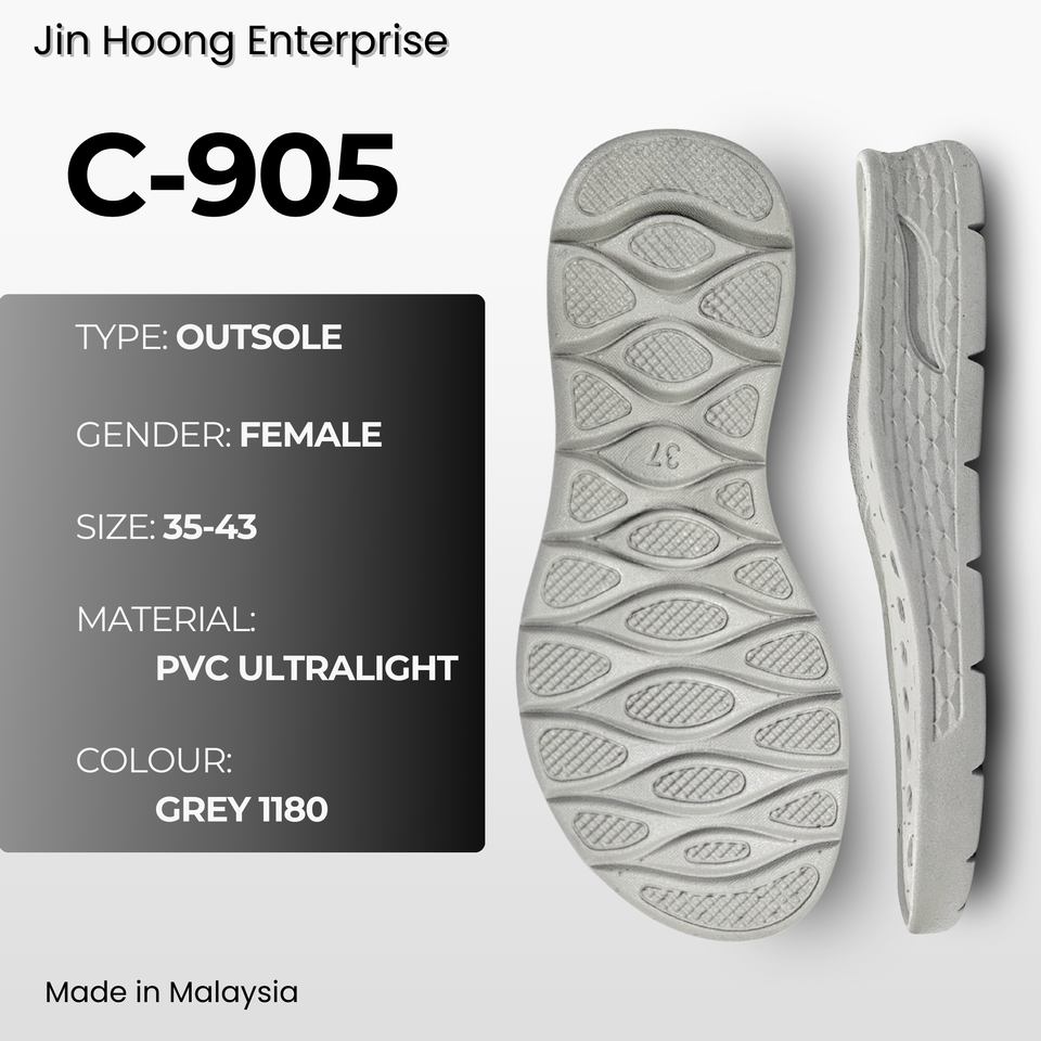 รองเท้าผู้หญิง Jin Hoong รุ่น C-905 สีเทาอ่อน พื้นรองเท้า PVC หนา 40 มม. น้ำหนักเบา ยืดหยุ่นสูง ทนทาน กันลื่น กันน้ำ สวมใส่สบาย