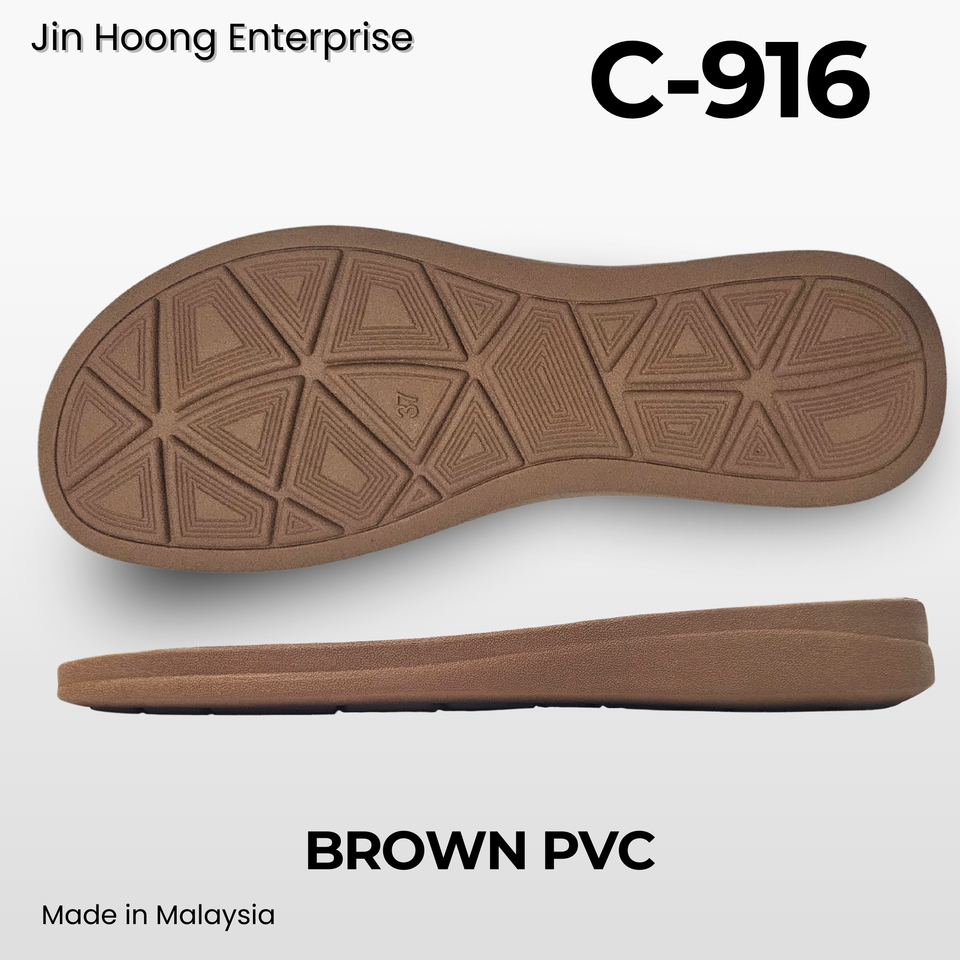 รองเท้าแตะกันน้ำพื้น PVC รุ่น C-916 สีน้ำตาล น้ำหนักเบา ทนทาน กันลื่น สำหรับผู้หญิง ยี่ห้อ Jin Hoong