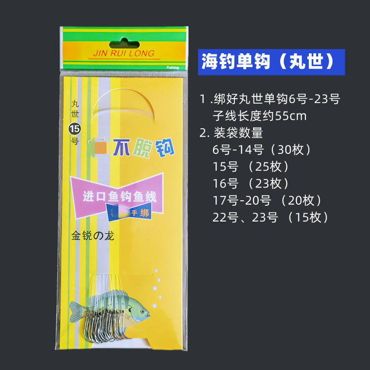 สายเบ็ดตกปลาทะเลแบบมือผูก ยี่ห้อ Jin Rui Long รุ่น Single Hook พร้อมสายลีดเดอร์ สำหรับตกปลาแบส ขนาด 15 17 23