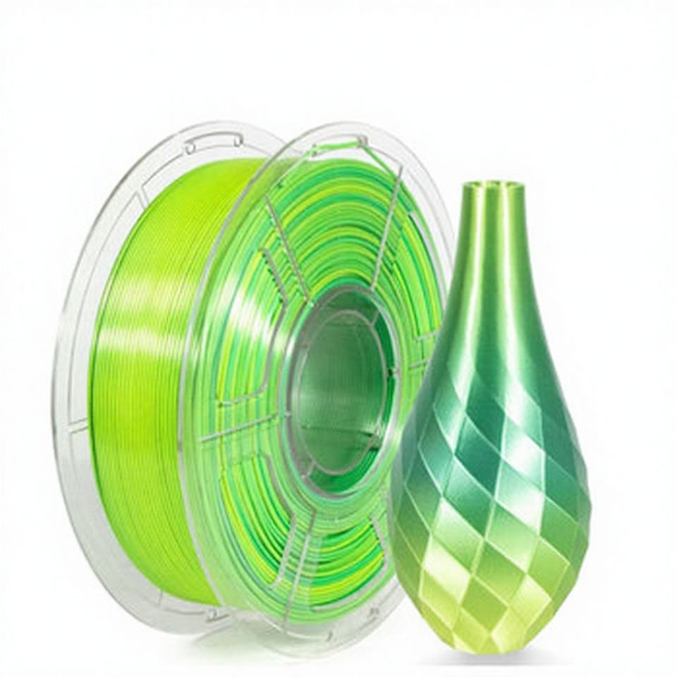 เส้นใยพิมพ์ 3 มิติ Jinccai คุณภาพสูง ผลิตจากไหม PLA สีรุ้ง ขนาด 1.75 มม. วัสดุบริสุทธิ์ 100% แบบสองสี น้ำหนักสุทธิ 1 กก. บรรจุภัณฑ์สุญญากาศ