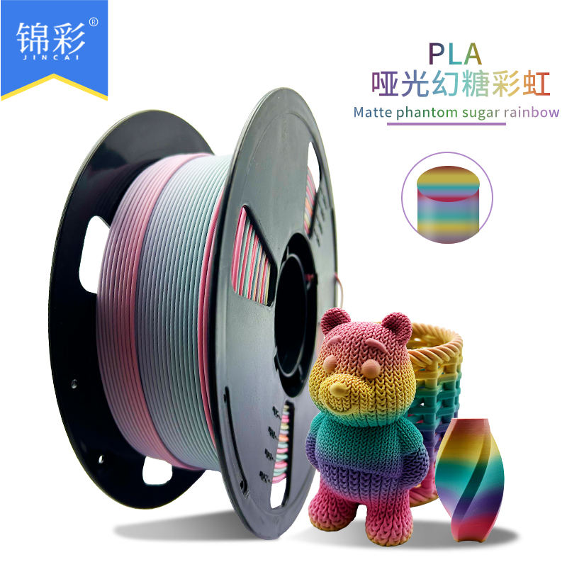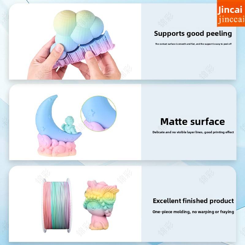 เส้นพลาสติกสำหรับเครื่องพิมพ์สามมิติ Jinccai PLA Matte Gradient หลายสี ขนาด 1.75 มม. +/-0.02 มม. คุณภาพสูง สีสันสดใส น้ำหนัก 1 กก. แบบอัดรีด