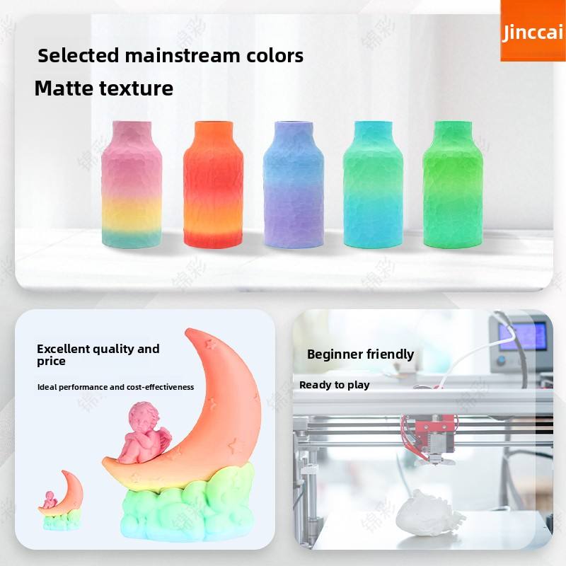 เส้นพลาสติกสำหรับเครื่องพิมพ์สามมิติ Jinccai PLA-Matte Series น้ำหนัก 1 กก. ขนาด 1.75 มม. +/-0.02 มม. คุณภาพสูง สีสันสดใส แบบด้าน ไล่เฉดสี หลายสี 100%
