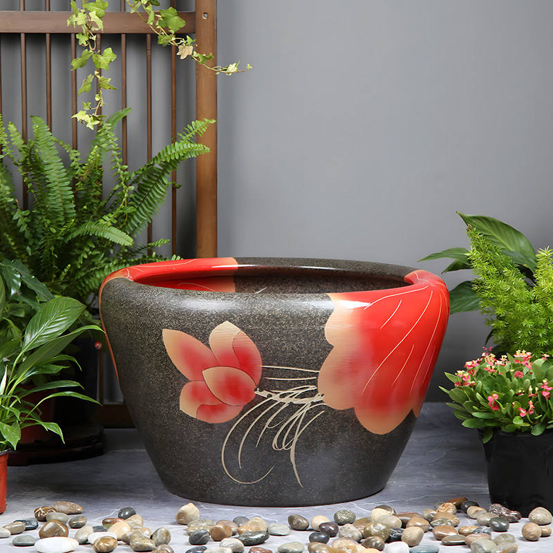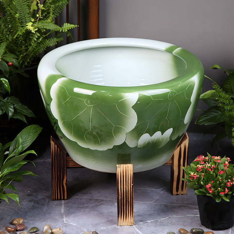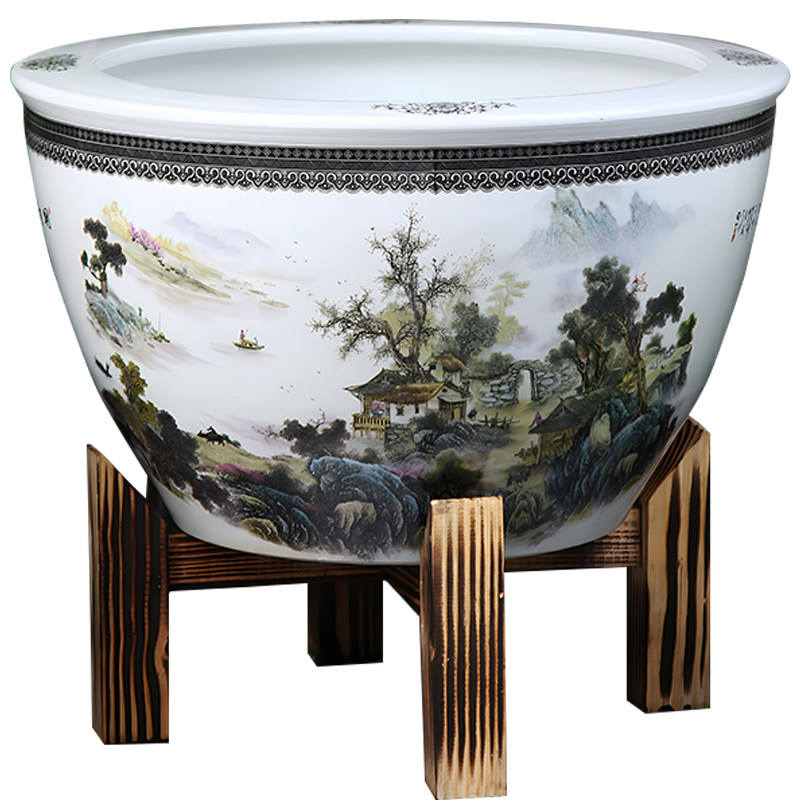 ปลาทองเซรามิกจิ่งเต๋อเจิ้น พร้อมฐานไม้เนื้อแข็ง ดีไซน์ภูมิทัศน์จีน ตู้ปลาขนาดใหญ่สำหรับใช้ในสวน