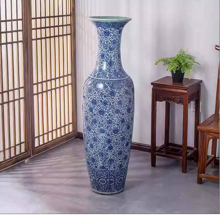 แจกันเซรามิกสีฟ้าและสีขาวขนาดใหญ่แจกันปูพื้นลายดอกไม้จากเซรามิกของตกแต่งในและนอกอาคาร