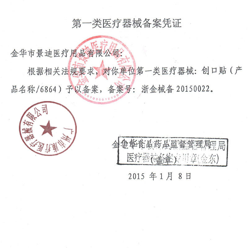 Zhejiang Jin Medical Equipment Registration No. 20150022