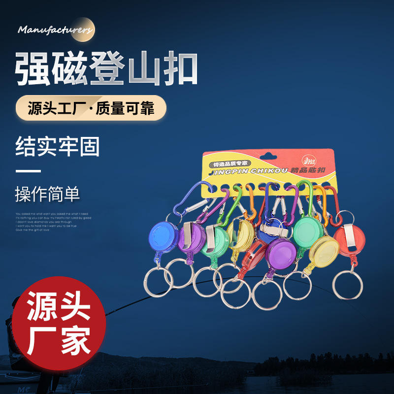 จิงพิน ชิกโควพวงกุญแจคาราบิเนอร์แม่เหล็กโลหะผสมสังกะสีแบบพกพาหลายสีสำหรับตกปลาเดินป่าใช้กลางแจ้ง
