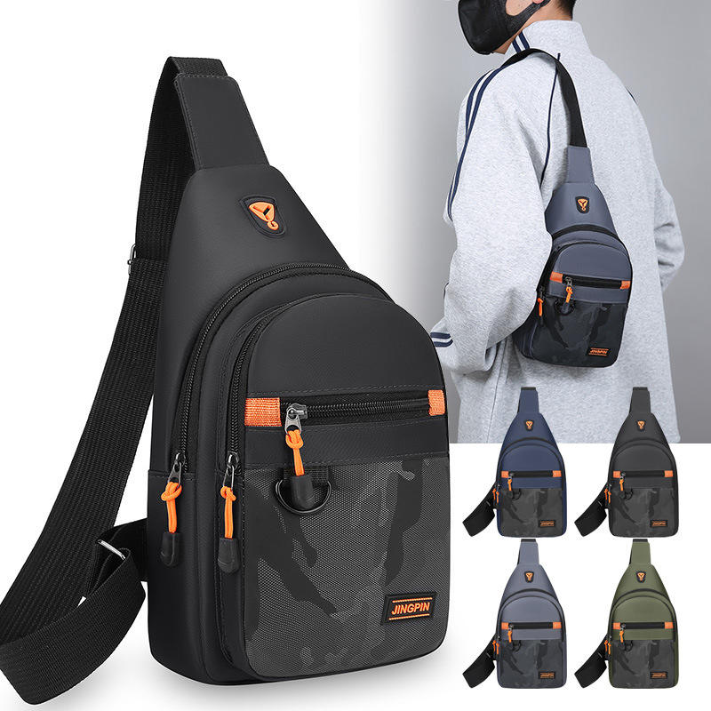 กระเป๋าคาดหน้าอกผู้ชาย Jingpin ผ้าอ๊อกซ์ฟอร์ด ความจุขนาดใหญ่ สีเทา สีดำ สีเขียวทหาร สีน้ำเงินเข้ม สีพื้น ฤดูใบไม้ผลิ 2026 ชุดลำลองประจำวัน