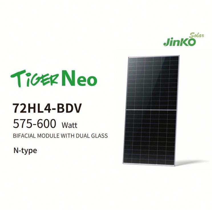 JINKO Tiger 575-600Watt 72HL4-BDV ใหม่ JINKO แผงเซลล์แสงอาทิตย์575W 580W 585W 590W 595W 600W JINKO N Type befacial แผงกระจกคู่ PV