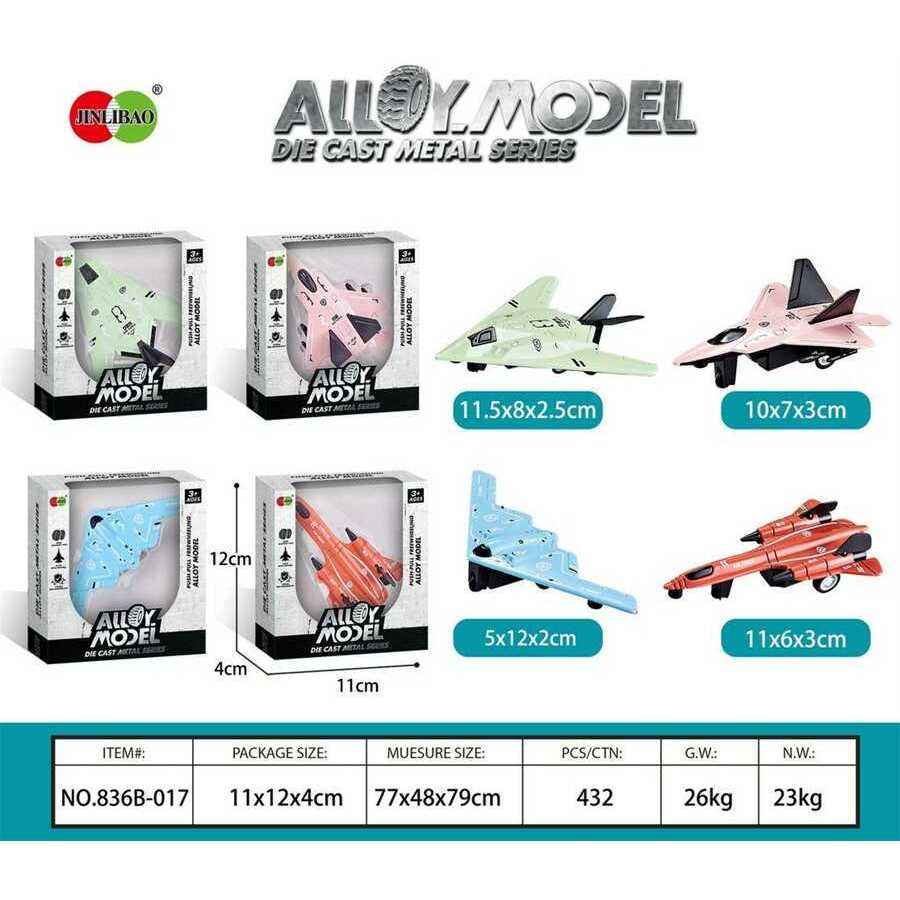 จินลี่เป่า โมเดลเครื่องบินโลหะผสม ขนาด 11x6x3 ซม. ของเล่นแบบดึงถอยหลัง 4 แบบ 4 สี คละแบบ สำหรับเด็กอายุ 2-4 ปี