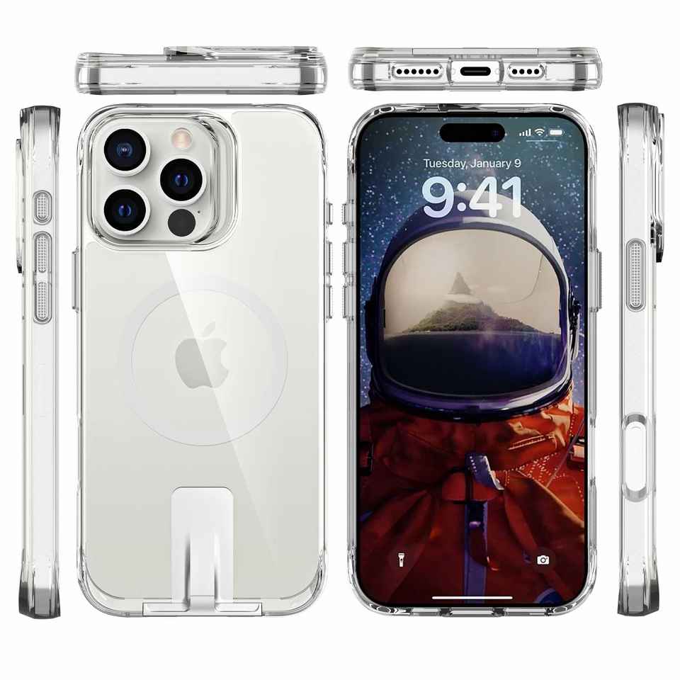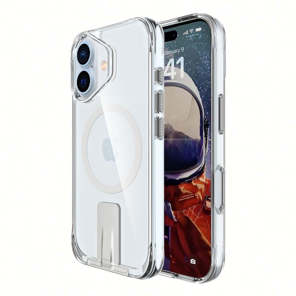 เคสแม่เหล็ก TPU ยี่ห้อ Jinniu Star สำหรับ 16 Pro Max แบบใส มองไม่เห็น พร้อมขาตั้ง ป้องกันการกระแทก