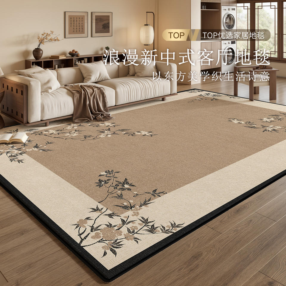 พรมปูพื้นสไตล์จีนใหม่ Jinrui รูปทรงสี่เหลี่ยมผืนผ้า ทนต่อคราบสกปรก เหมาะสำหรับห้องนั่งเล่นและห้องนอน ลายดอกไม้และพืช