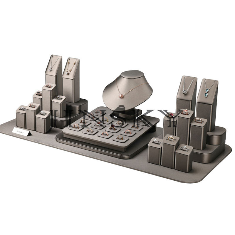 ชุดขาตั้งโชว์เครื่องประดับหนังกลับสุดหรูทำมือ Jinsky สีน้ำตาล สำหรับแหวน สร้อยข้อมือ สร้อยคอ ต่างหู