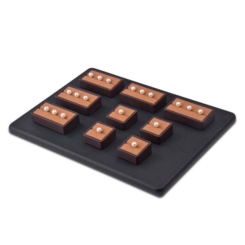 ชุดแท่นโชว์เครื่องประดับไมโครไฟเบอร์สีน้ำตาลหรูหรา ยี่ห้อ Jinsky รีไซเคิลได้ ทันสมัย พร้อมกล่องเก็บเพชรเม็ดเดี่ยวแบบกำหนดขนาดได้หลายขนาด