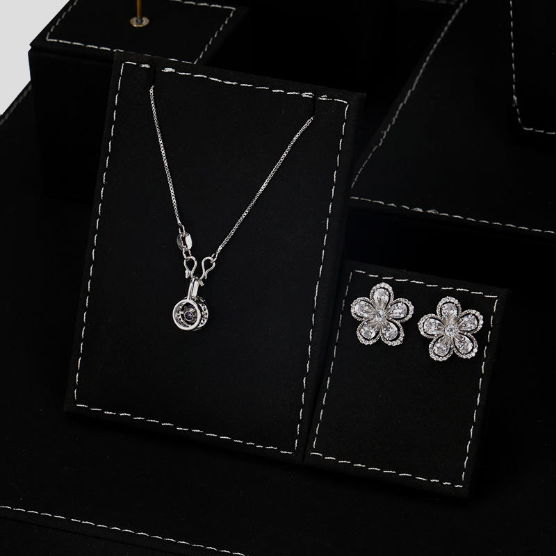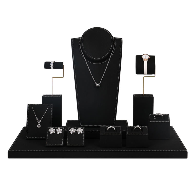 Jinsky ชุดการแสดงเครื่องประดับไมโครไฟเบอร์สีดำหรูหราขาตั้งสำหรับร้านขายเครื่องประดับ