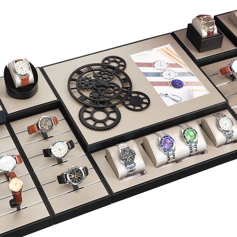 แท่นวางนาฬิกาทรงตัวซี รุ่นหรูหราจาก Jinsky สีเบจ/เขียว/ดำ ทำจากโลหะและไมโครไฟเบอร์ ชุดโชว์นาฬิกาสุดหรู พร้อมกล่องใส่ รับสกรีนโลโก้