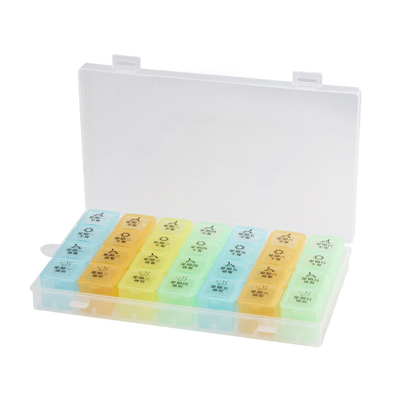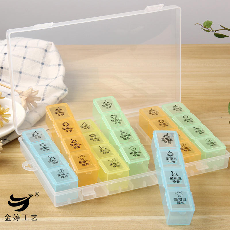 กล่องยาพกพาแบบปรับแต่งได้ของจินติง สำหรับหนึ่งสัปดาห์ 28 ช่อง ขนาดใหญ่ สำหรับเก็บยา 7 วัน ทำจากโลหะ
