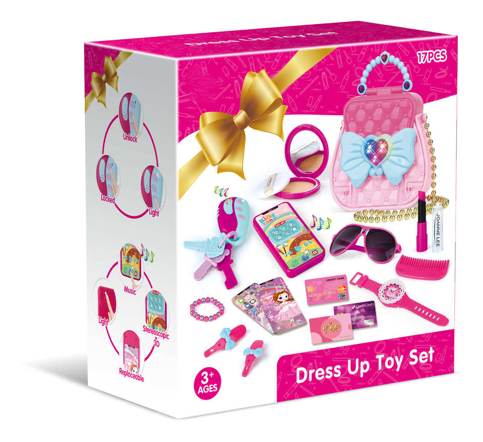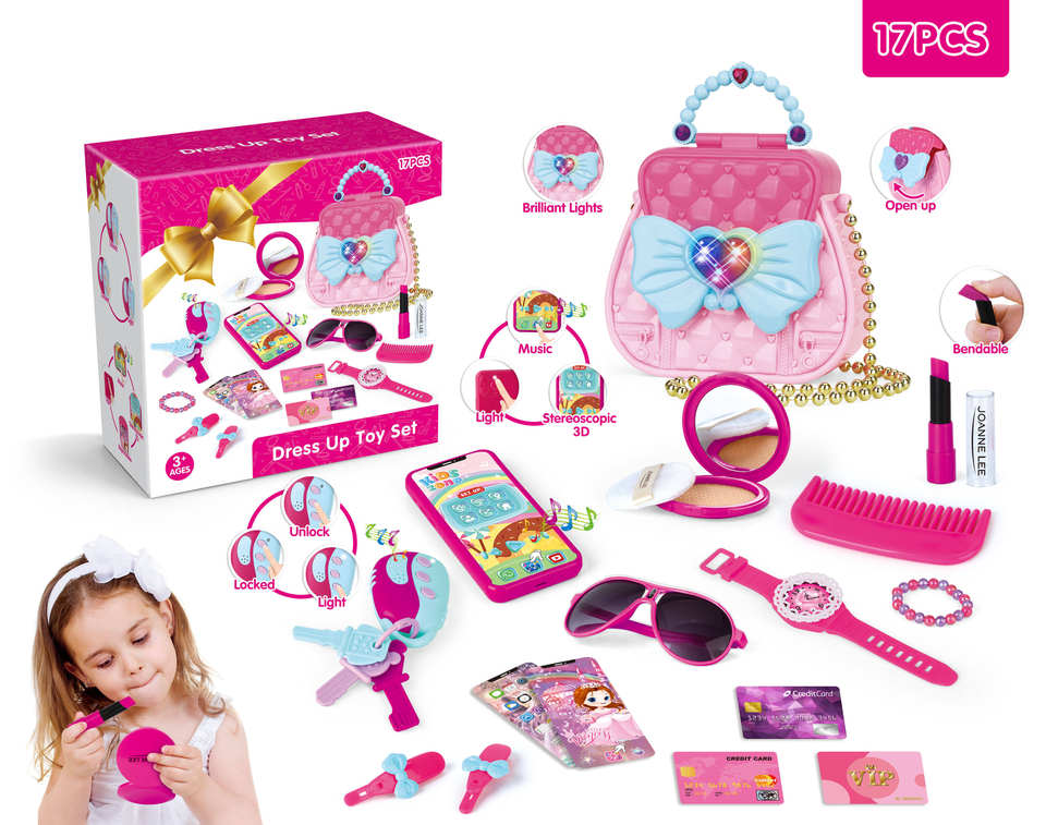 Jinying Superแฟชั่น17ชิ้นสีชมพูแต่งตัวของเล่นเด็กแกล้งเครื่องสําอางแต่งหน้าชุดของเล่นSoung Lightสําหรับของขวัญสาว