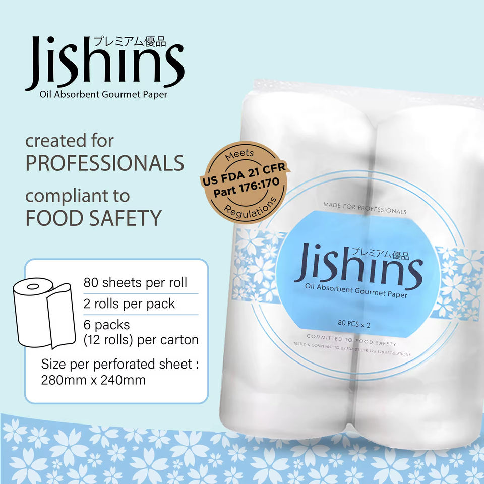 Jishins Disposable Oil Absorbent Paper for Wagyu Sushi Sashimi Fried Food Preparation in Professional Kitchens