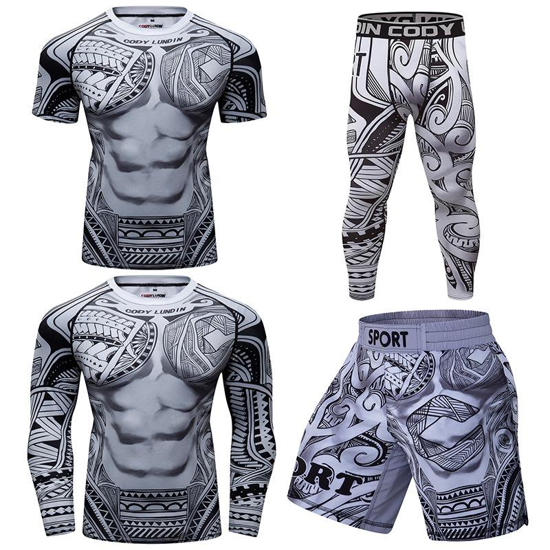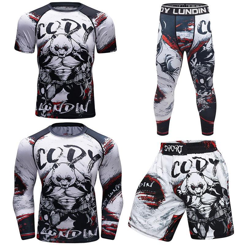 Jitsu rashguard MMA เสื้อยืด + กางเกงสำหรับผู้ชาย3ชิ้น/เซ็ตสไตล์บราซิลเลี่ยน grappling BJJ เสื้อผ้ากีฬาป้องกันผื่นเสื้อผ้ายิมกางเกงขาสั้น