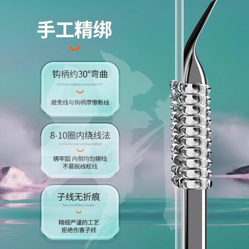 ชุดเบ็ดตกปลาจิวหวาง วูลฟ์ทูธ แบบมีห่วงคู่ พร้อมสายลีดเดอร์ผูกสำเร็จ ไม่มีเงี่ยง สำหรับตกปลาคาร์พน้ำจืด