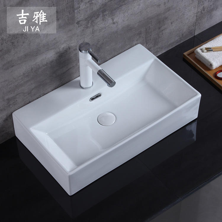 Jiya 211แบบจำลองอ่างล้างหน้าเซรามิกแบบชิ้นเดียวสำหรับใช้ในบ้านและโรงแรมขนาด600x370x130มม.