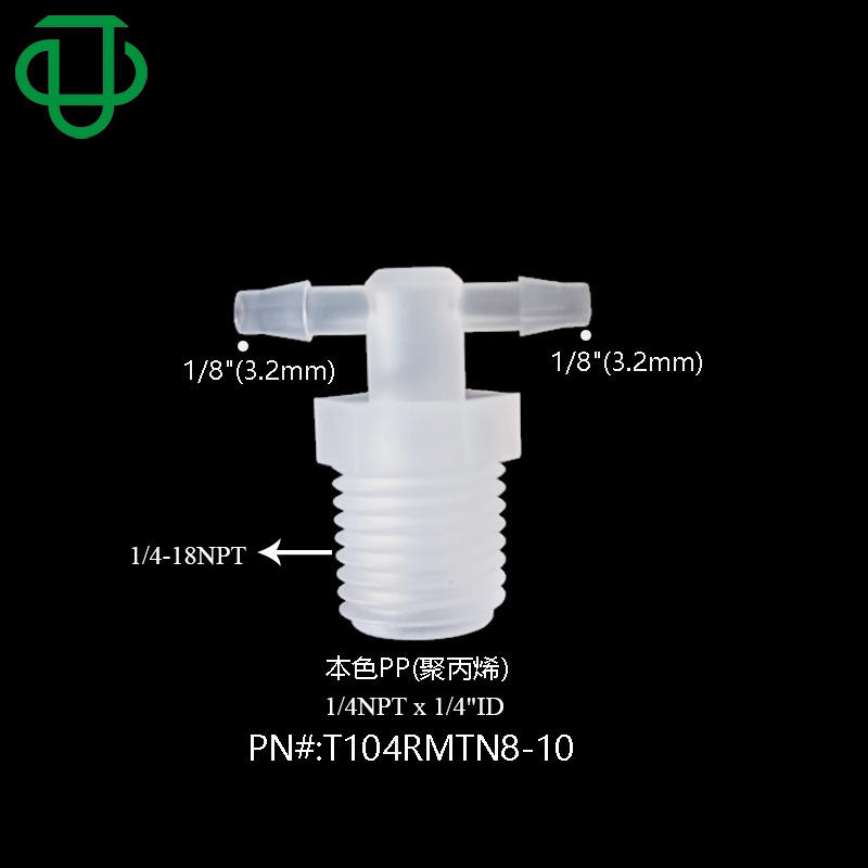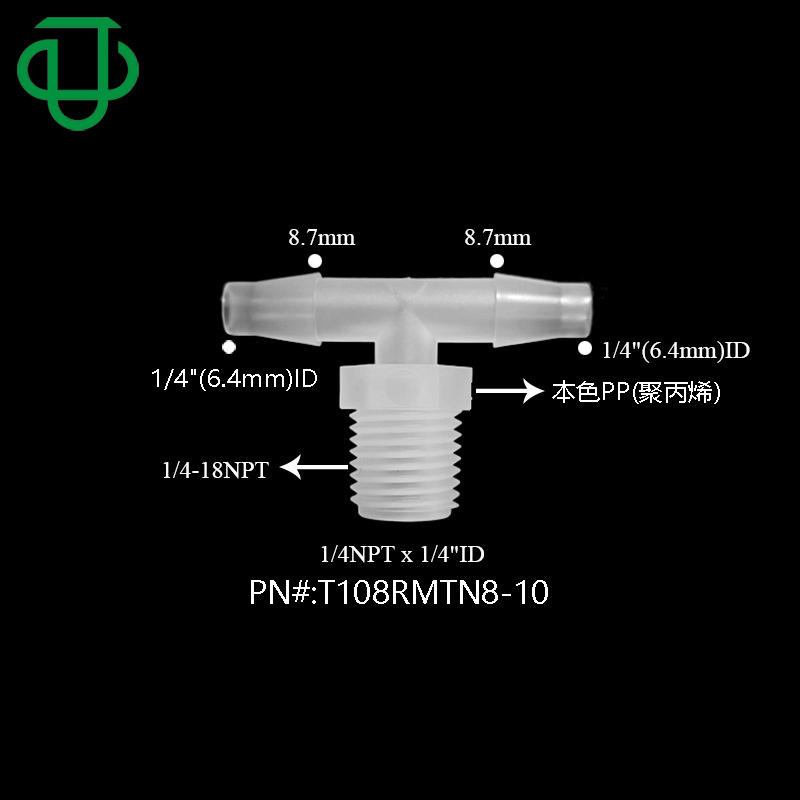 ข้อต่อพลาสติก PP รูปตัว T ยี่ห้อ Jiyou ขนาด 1/4 นิ้ว NPT เกลียวตัวผู้ สำหรับท่ออ่อน ทนทานต่อสารเคมี