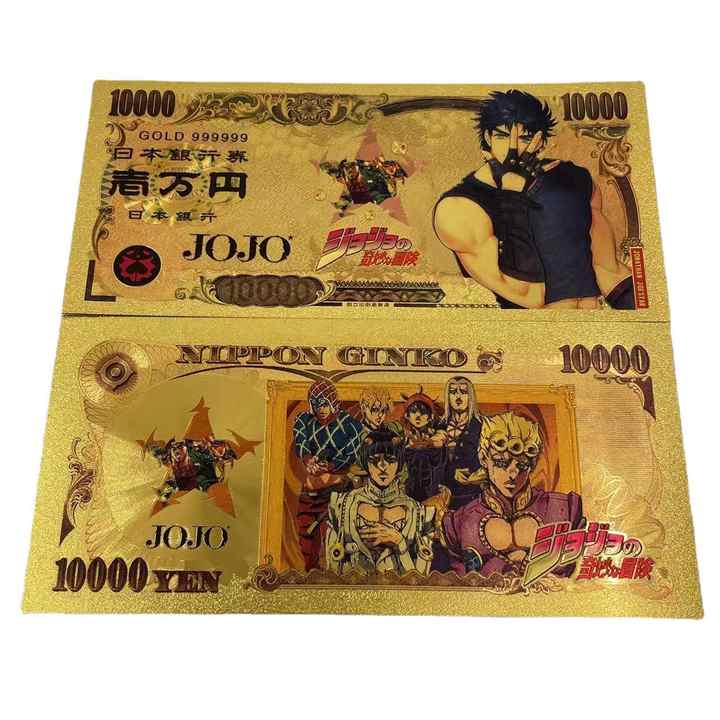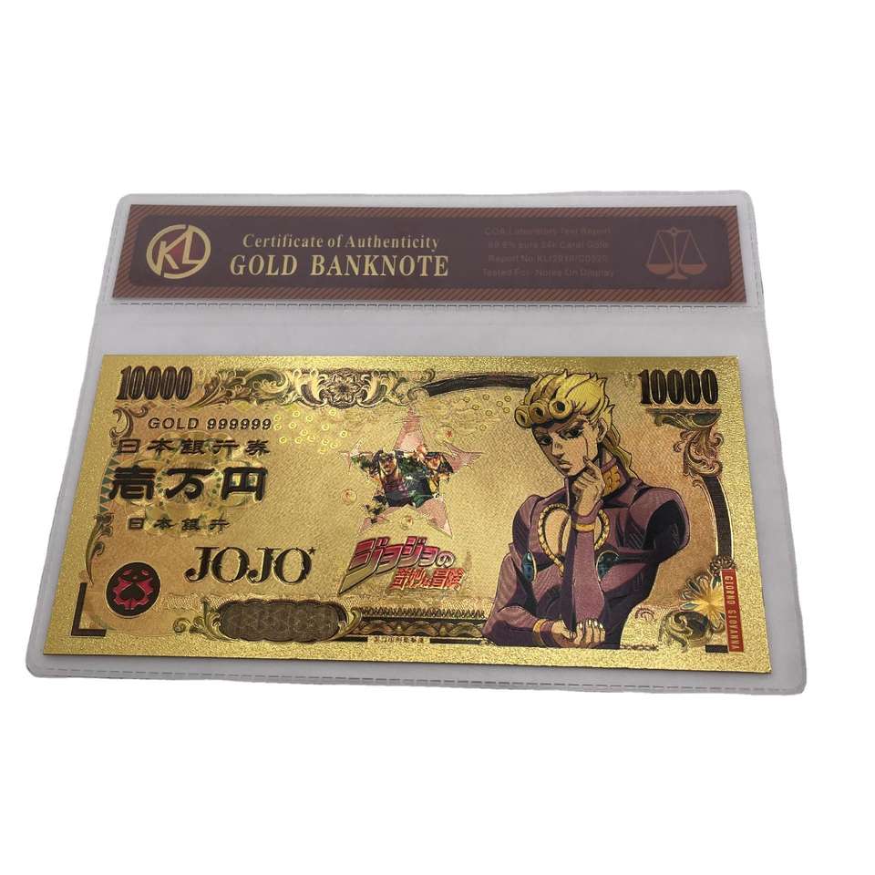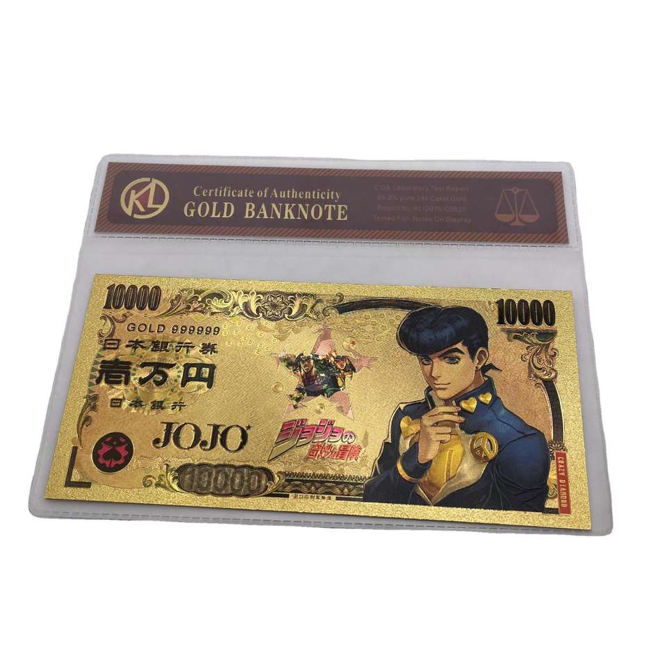 ธนบัตรพลาสติกเคลือบทองคำที่ระลึกการ์ตูนโจโจ้ บิสเซียร์ เอดเวนเจอร์ ของสะสมของขวัญอนิเมะญี่ปุ่นคลาสสิก