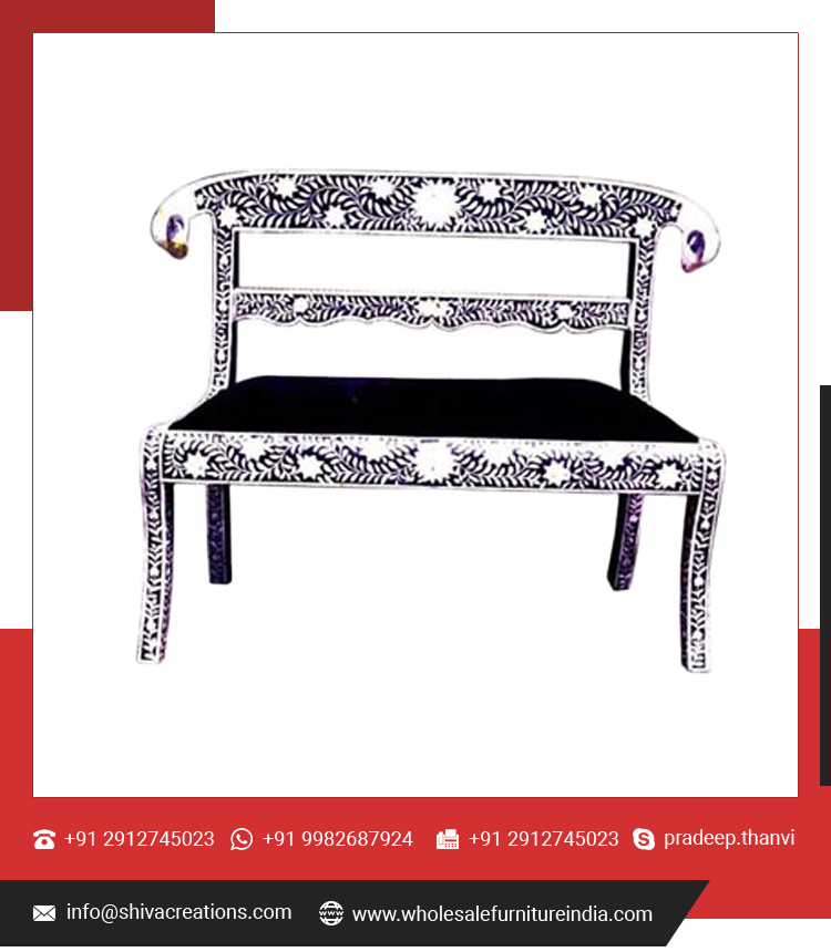 Jodhpur Luxury Interior Furniture Floral Design Bone Inlay Bench