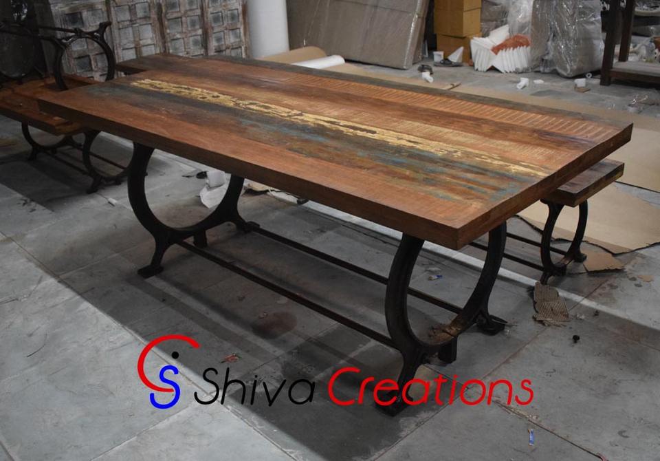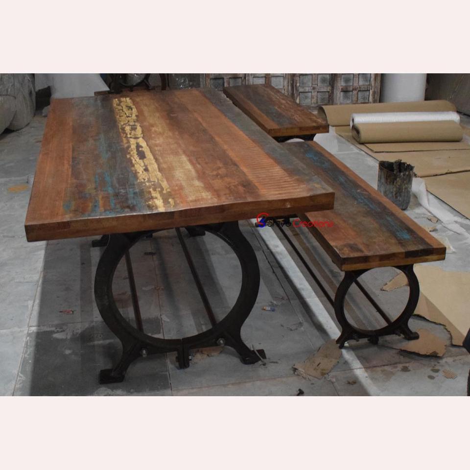 Item name:Reclaimed wood top cast iron legs dining table bench set