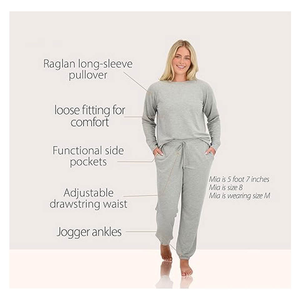 ชุดวอร์มผู้หญิงสำหรับฤดูหนาว น้ำหนักเบา เหมาะสำหรับการเดินทาง ชุดลำลอง 2 ชิ้น เนื้อผ้านุ่มสบาย พร้อมกางเกงจ็อกเกอร์กันลม