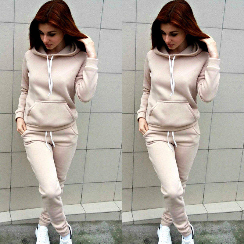 ชุดวิ่งออกกำลังกายสำหรับผู้หญิงชุดวอร์ม2ชิ้นชุดออกกำลังกายสำหรับผู้หญิงชุดวอร์มกางเกงและเสื้อฮู้ด