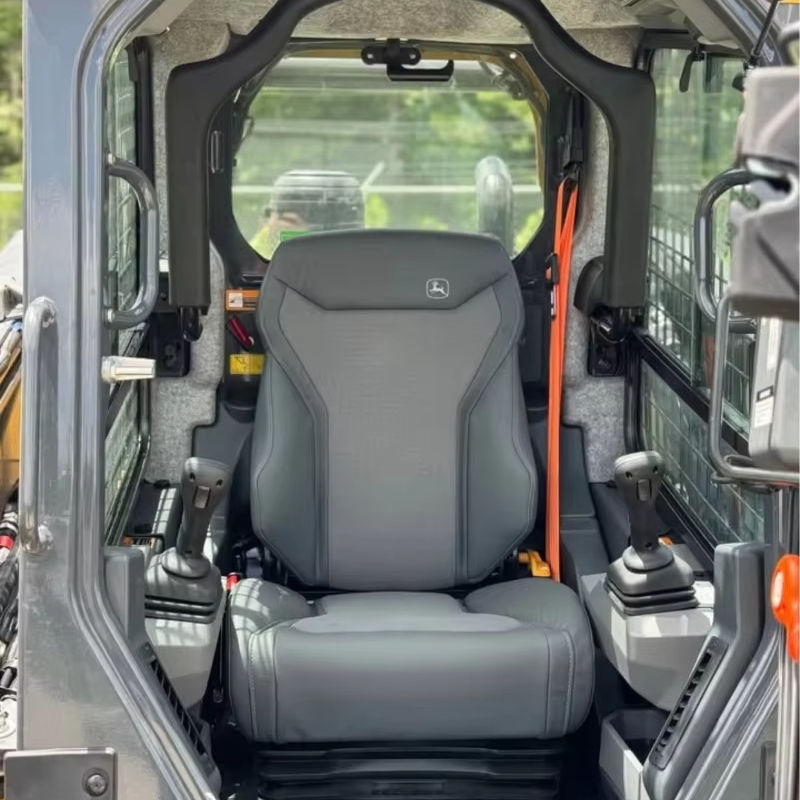 รถตักล้อยางสำหรับงานป่าไม้ John D 333P เครื่องยนต์ดีเซลขนาดใหญ่ พร้อมอุปกรณ์ตัดไม้ในป่า ใช้เครื่องยนต์และปั๊มยันมาร์