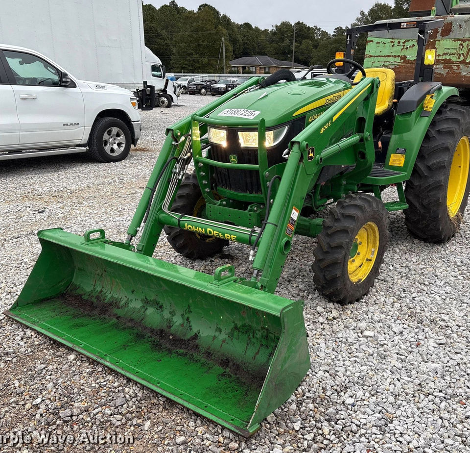 รถแทรกเตอร์จอห์นเดียร์ รุ่น 4044M 44 แรงม้า ขับเคลื่อน 4 ล้อ ขนาดกะทัดรัด พร้อมระบบพวงมาลัยเพาเวอร์และระบบไฮดรอลิก PTO สำหรับงานเกษตร จัดสวน และขนส่ง