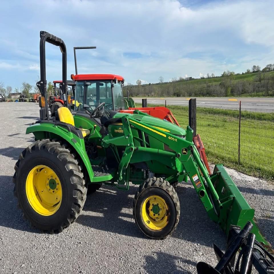 รถแทรกเตอร์อเนกประสงค์ John Deere รุ่น 4044M กำลัง 75 แรงม้า พร้อมเครื่องยนต์และระบบปั๊มที่แข็งแกร่ง ออกแบบมาเพื่อการใช้งานหนักในพื้นที่ที่มีสภาพขรุขระ และให้ประสิทธิภาพการทำงานที่เชื่อถือได้ในทุกวัน